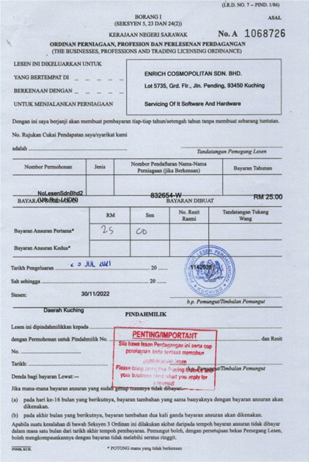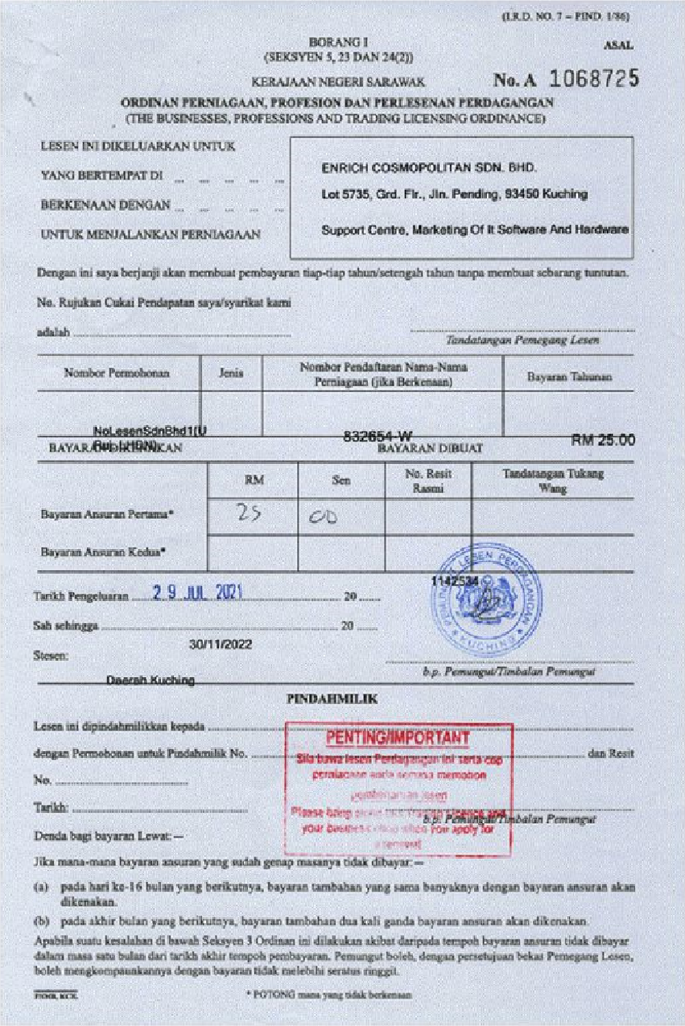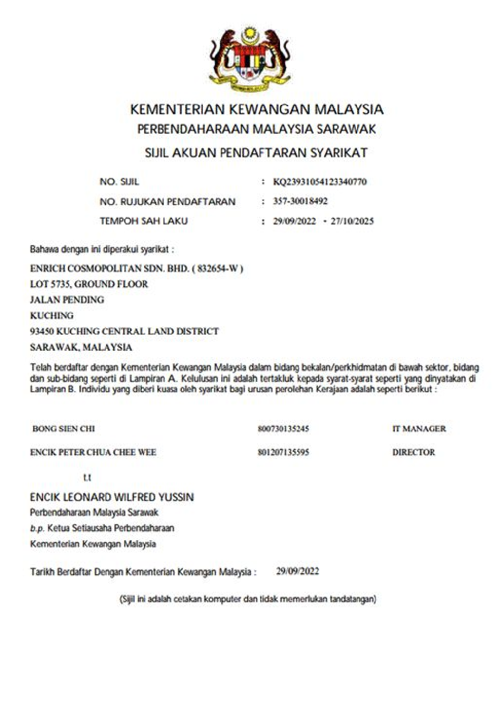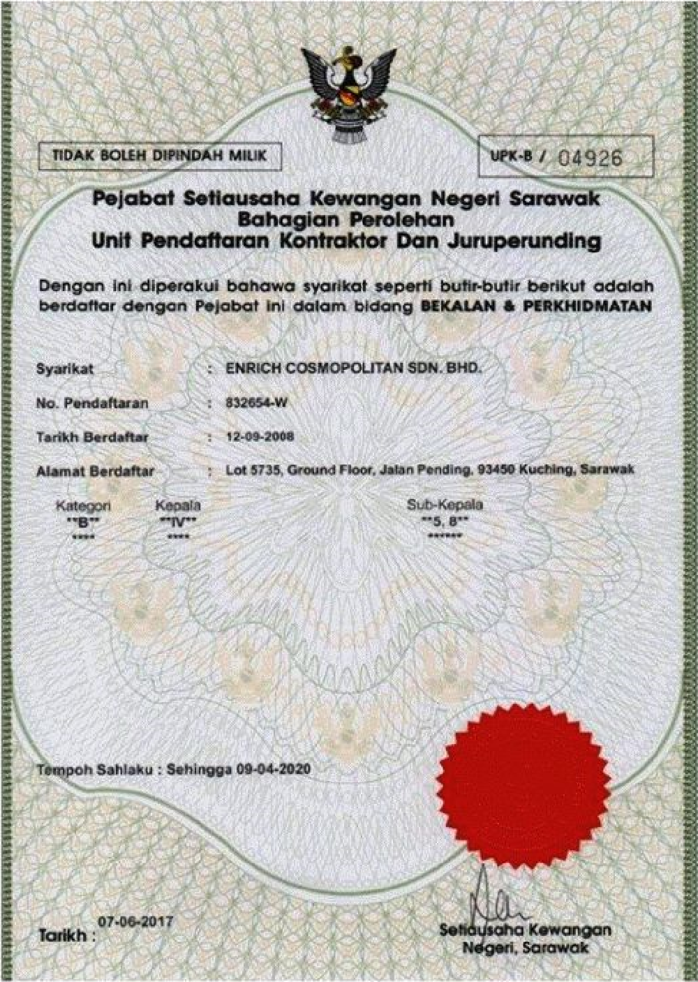 ENRICH COSMOPOLITAN is a wholly owned subsidiary of Enrich Holding, a company incorporated in Sarawak, Malaysia since November 2008.